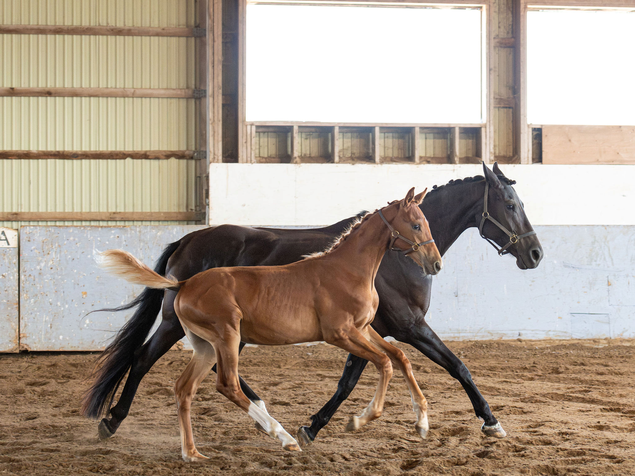 This will be the second foal for our sweet and fun Verbands Premium mare Grandiosa known around the farm as “Didi”. She completed her Performance test in the fall of 2024 with excellent scores including 8.5 from the test rider. She is by the top producing FS Next Diamond out of the Vice Bundeschampionesse Grande Classe. Her first foal by Golden State was a Premium colt that we have retained for our program. Crossed with Nieuwmoed’s Mr Valentine we think this should be a superstar in the making.